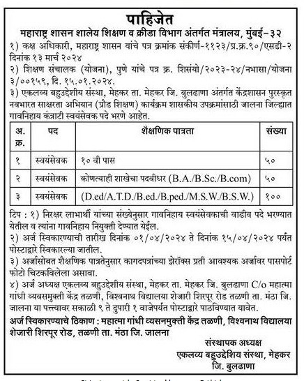 Name of the Post: Education Dept Maharashtra Requirement 2024